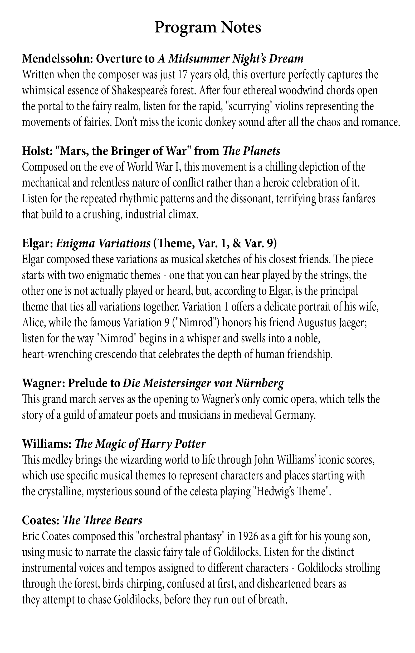 Program Notes
